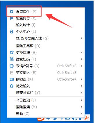 1、首先我们切换出搜狗输入法,用鼠标右键搜狗输入法的状态栏,然后打开“设置属性”;