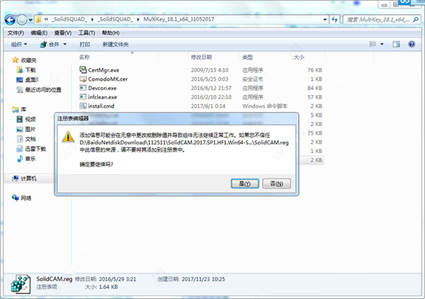 11、安装完成后,运行“SolidCAM.reg”载入许可信息即可