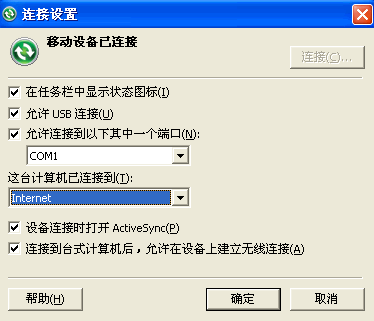 使用USB线连接手机与电脑,activesync自动连接