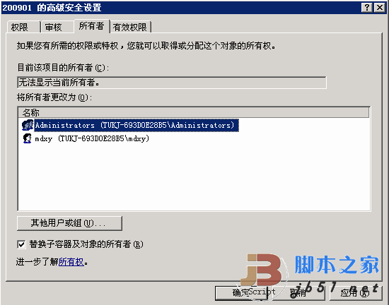 选择administrators组 并选择 “替换子容器及对象的所有者” 确定后即可,然后根据你的网站权限需要添加用户权限即可。