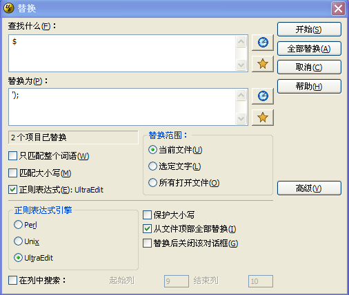 正则表达式 (UltraEdit 语法):