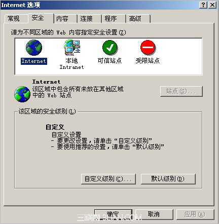第三步:进入“安全”设置画面,点击“自定义级别”按钮: