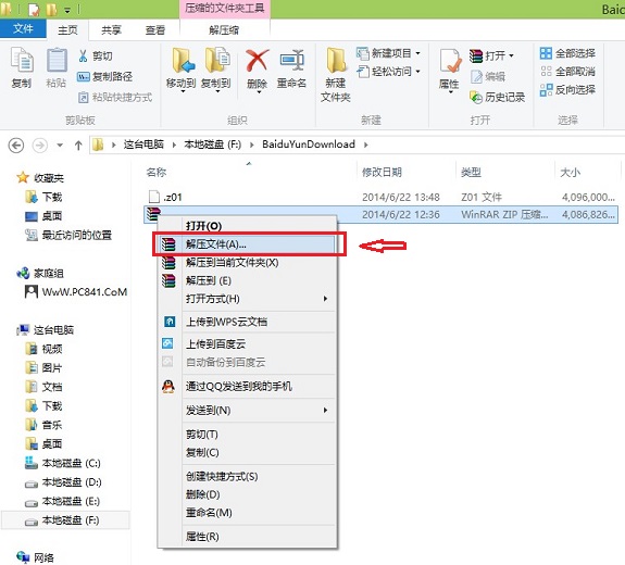 一、首先将多个分卷的压缩文件,放置到电脑中的同一个文件夹,然后在其中的一个上右键,然后选择“解压文件”,如下图所示: