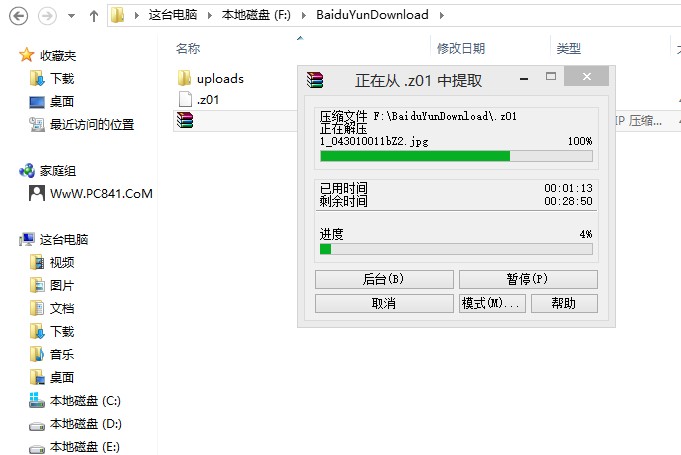 三、接下来我们会看到,压缩解压软件会自动提取其他分卷文件,如下图所示: