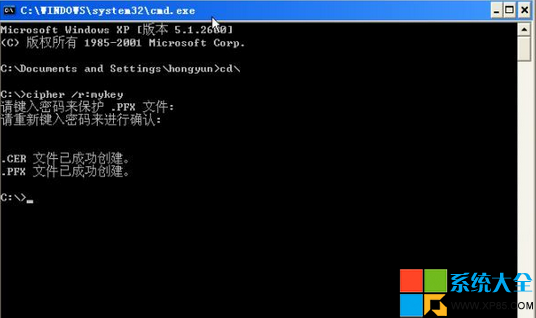 我们知道,EFS(Encrypting File System,加密文件系统)是Windows XP内置的一个实用功能,可以对NTFS分区上的文件和数据进行加密,在很大程度上提高了数据的安全性。小李之所以可以打破EFS加密算法的保护,关键是使用了系统提供的“策略代理”方法,该方法可以让特定的用户读取所有的加密文件。当然,该方法是针对多帐户环境而言的。因为在该公用电脑中存在多个拥有管理员权限的帐号。小王使用的是“Administrator”账户,而另一个同事在该机上使用的账户名称是“hongyun”,该账户同样拥有管理员权限。小李正是借助于“hongyun”账户,才轻松突破了加密的束缚。小李首先以“hongyun”账户登录系统,之后在“开始”→“运行”中执行“cmd.exe”程序,在CMD窗口首先切换到C盘根目录,之后执行命令“cipher /r:mykey”,注意其中的“mykey”为导出密钥文件名。随后系统提示输入密码(如图1),小李输入的密码为“key123456789”。当然,该密码的可以随意设置。