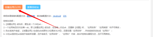 4、在这里因为是展示Android百度API的应用,所以点击创建应用,在窗口中选择for mobile,应用名称可以随便设置。
