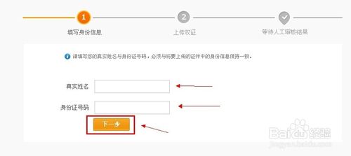 填入自己的身份证号以及自己的真实姓名。点击下一步
