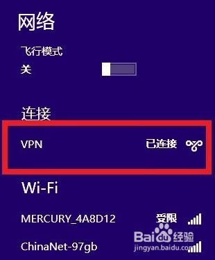WIN8系统:进入控制面板后找到网络共享中心设置流程和WIN7差不多。在设置完毕之后需要在右下角进入WIN8特有的网络选择界面找到V*N输入账号密码链接。