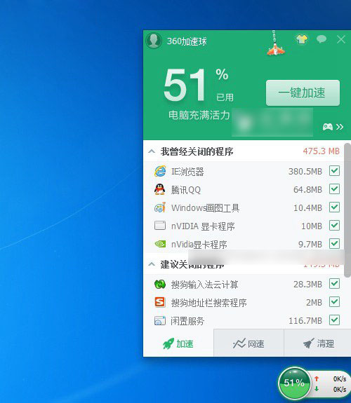 设置360加速球显示
