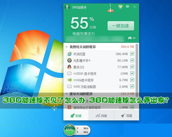 360加速球不见了怎么办?