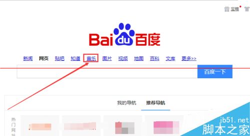 1、进入百度搜索引擎,点击菜单栏上的音乐
