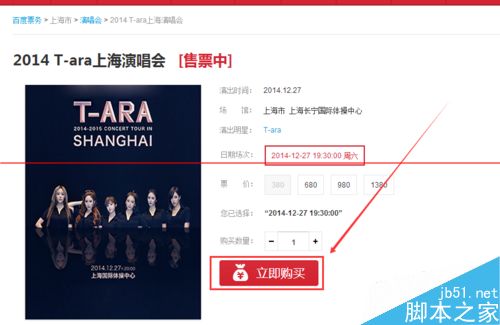 6、选择要购买的票价,注意演出时间,然后点击立即购买
