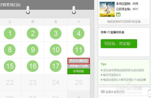 1、每天都写经验可以领取全勤宝箱,30天签到之后,可以领取四级宝箱