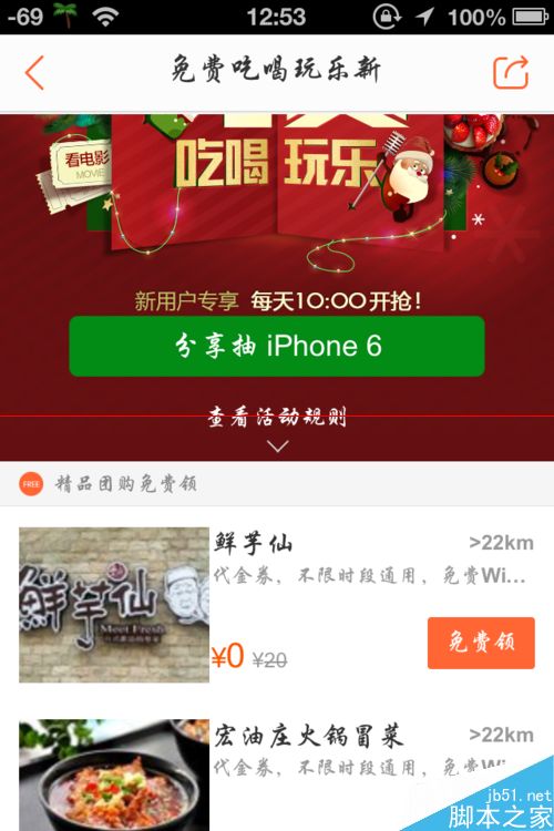 2、点免费吃喝玩乐,进入活动页面,如图所示。