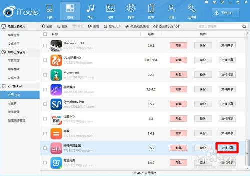 5、在列表中找到哔哩哔哩动画,选择文件共享以打开它的文件系统