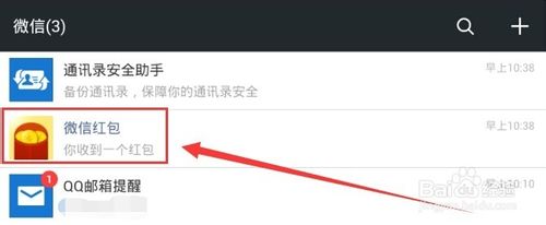 1.下载完成,大家回到微信中。会发现我们的微信多了一条信息,告诉我们收到了一个红包。