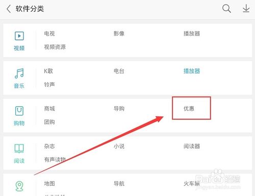 2.在软件分类中有优惠选项,我们只需要打开它,里面就是数不清的手机APP ,可以让我们在快速的省钱的呦。