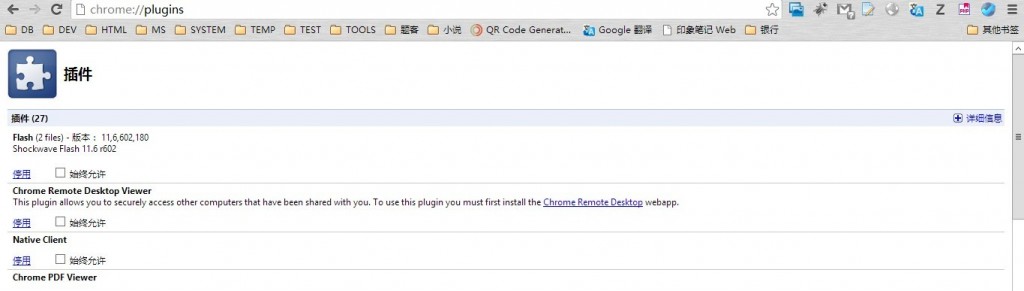 终于让我解决了,只需要在在Chrome浏览器中输入chrome://plugins,进入下列界面