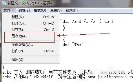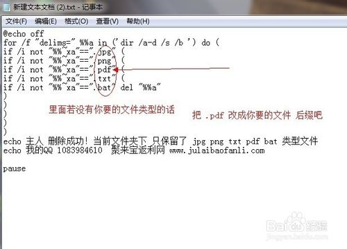 echo 主人 删除成功!当前文件夹下 只保留了 jpg png txt pdf bat 类型文件,