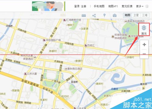 2、找到我们要查看的位置,在地图右上角点击 【路况】按钮,如图所示: