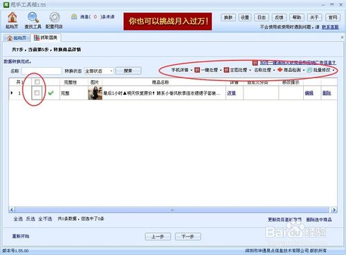 6、可进行以下操作:手机详情一键制作、一键处理各种商品信息、主图的处理、名称的处理、检测商品、批量修改等。