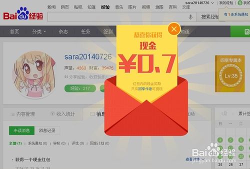 2、多劳多得,第日发表的经验多,获得奖励的机会也多,每日发布第一篇、第三篇、第五篇经验都会有相应的红包,且越到后面,奖励越大,从4毛到7毛到一元五毛不等;