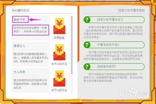 加入百度经验回享计划,成为签约作者后,发布的经验就会有回享提成,同时,完成回享专属本每天的任务,还会收到系统发给的红包奖励。知识在于积累,如果我们做任何事情都能静下心来,持之以恒,一步一个脚印,相信无论干什么都会获得成功,在百度经验要收获成功,也是一样,不仅要付出才能获得回报,还必须要求自己不断提炼生活经验、提高专业技能,这样分享出去的知识才能真正帮到别人,从而收到相应的回馈。如果将自己的目标定位在提升自我,帮助他人,不以赚钱为目的,相信我们签约作者成长的速度和空间会更大。
