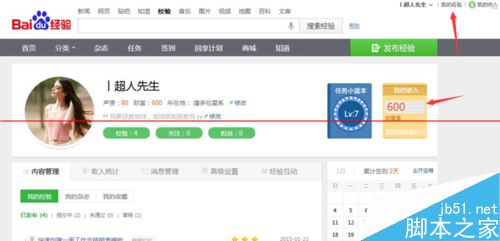 5、然而对于已经加入回享计划的作者,他们的经验界面是这样子的,在小蓝本的旁边就直接是按照现金收入来计算的。