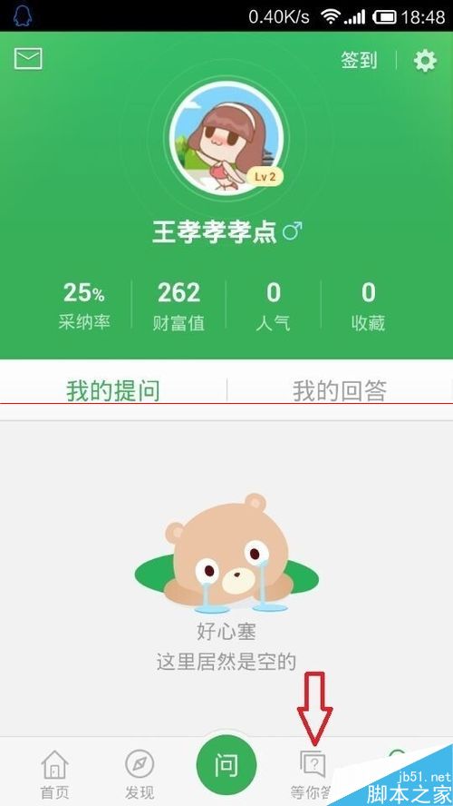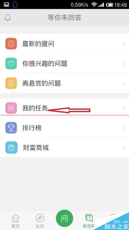 2、点击等你答选项,我们可以看到我的任务选项,我们点击进入任务栏(完成任务可以获得幸运卡奖励)