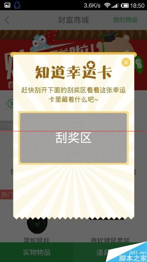 9、然后点击我们的幸运卡,手指划阴影区域开始刮奖,慢慢的开始使用我们的幸运卡吧。