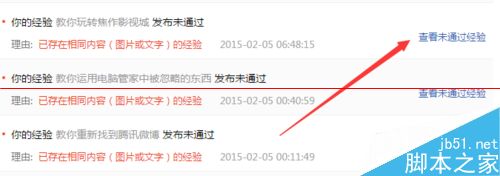 2、下面告诉大家我的亲身经历,在晚上熬夜码字后,发出经验,第二天一看却是没通过审核,这样的话你首先点击查看未通过经验,找到未通过经验点击编辑