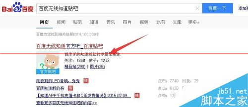 2、在百度搜索框中输入:百度无线知道贴吧,打开官网进入。