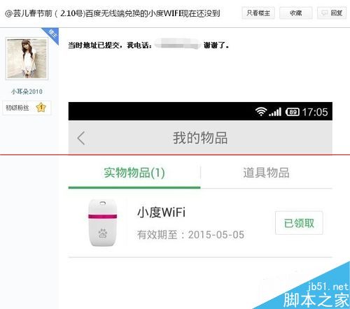 1、在手机百度客户端,使用财富值兑换wifi,下图中已领取,意思:已兑换成功。需有效期内收货,若超过有效期在反映未收货,后果自负。若在有效期内未收货,请及时与贴吧联系。