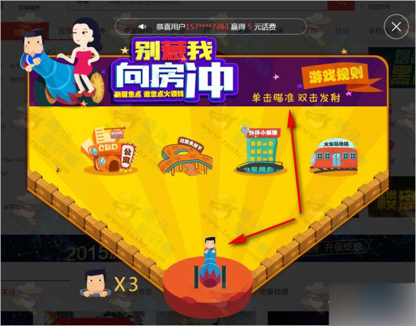 3、奖项设置:游戏期间,砸中房子便有机会获得最低5元,最高100元不等值话费奖励。