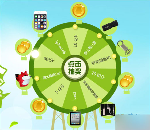 转盘抽奖得Q币、U盘、iPhone6 等实物。