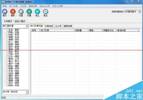 2、【采集热门文章】选择热门文章选项,勾选你的行业类目。比如数码科技类。然后点击【采集】按钮。既可采集出来数据来。这些都是云服务器3小时内的热门文章,可以根据阅读数和点赞数排序,找到您想要的文章。文章支持导出txt和html两种格式。软件增加了4条线路,为防止网络繁忙而采集不到数据的情况!