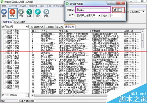 5、【采集热门公众号】采集公众号跟采集文章的操作一样,只需要把热门文章选项改为热门公众号选项,勾选类目,然后点采集!支持导出功能,导出后方便后面加入自定义采集