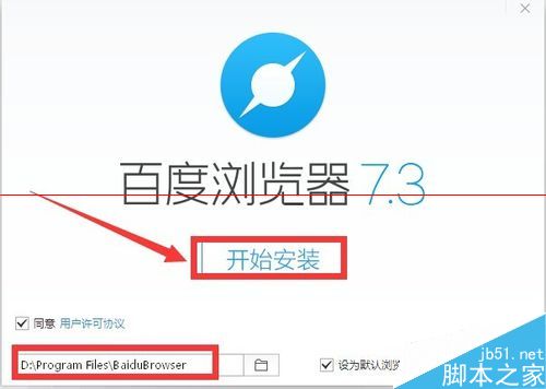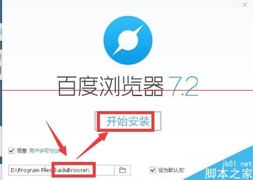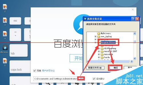 7、安装程序会在programfiles下自动新建一个baidubrowser的文件件作为存放程序的位置 点按开始安装