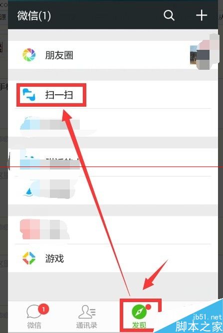 19、准备手机 打开微 在发现里 点按扫一扫标志