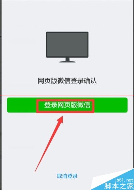20、对着电脑屏幕上的二维码扫描一下 然后会弹出如下界面提示 点登录网页版微信即可
