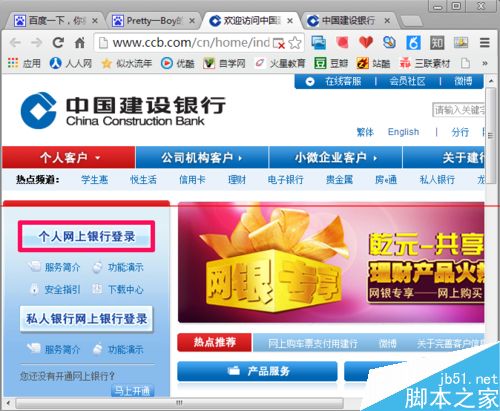1、首先进入银行的首页面,点击个人网上银行登录。