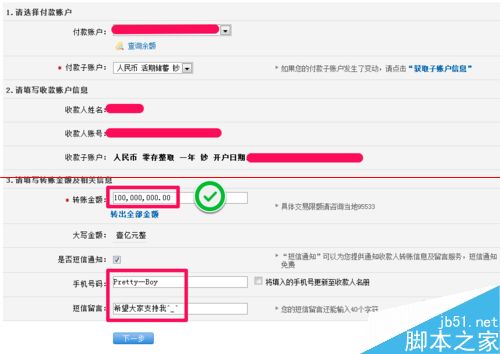 5、在转账金额中输入你开户时存入的金额然后点击下一步就可以了。
