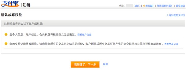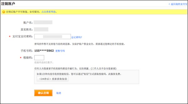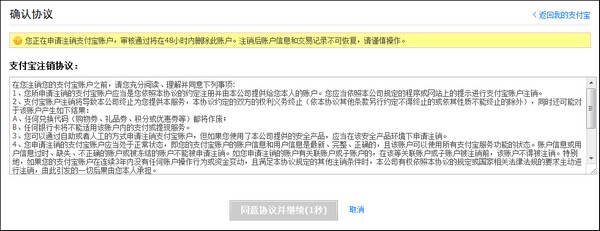 6、注销申请只对普通用户开放,与支付宝签约的商户在合约期内无法注销支付宝账户;