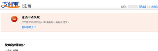 2)系统二次信息校验失败,页面提示注销申请失败。