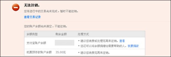 13、开通了宝点的用户并且宝点里面有余额无法注销。