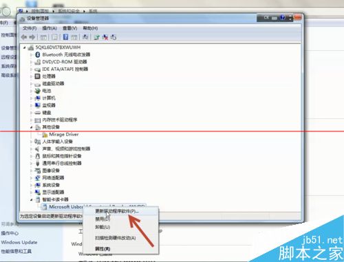 3、在智能选项卡上,单击鼠标右键,然后点击更新驱动程序软件。更新完成后就可以正常使用建行U盾了。