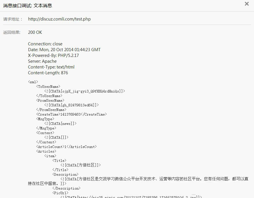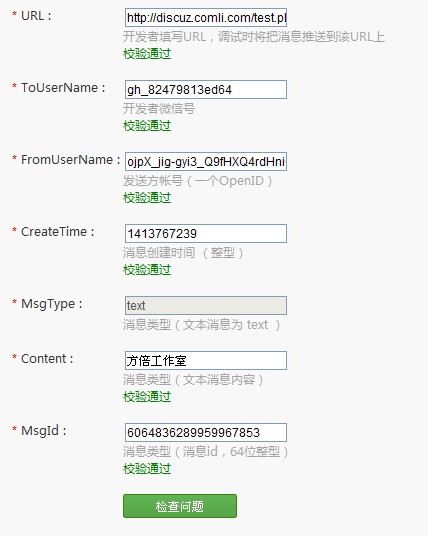 微信调试器是方倍工作室开发的用于微信公众平台接口开发调试的工具,具有Token校验、模拟关注及取消关注、发送文本/图片/语音/视频/位置/链接、模拟事件发送等功能。其原型是微擎的Emulator。
