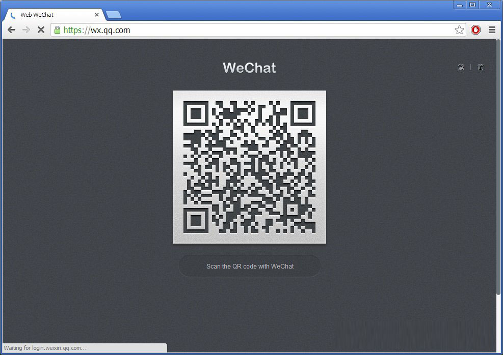 二、使用网页版微信调试浏览器中打开微信网页版地址 https://wx.qq.com/,页面显示一个二维码