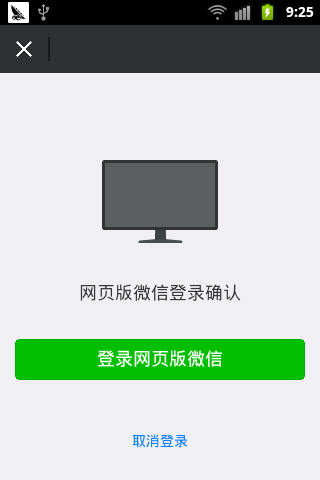 点击 “ 登录网页版微信 ”按钮,手机上显示如下