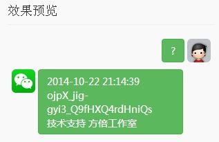 而浏览器中将会出现和手机版微信的界面,双击打开需要调试的公众账号,发送相应的关键字进行测试即可。如下所示